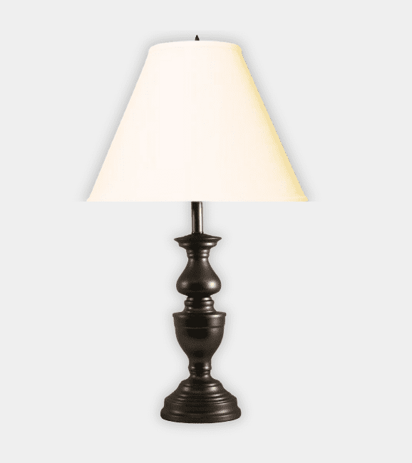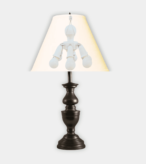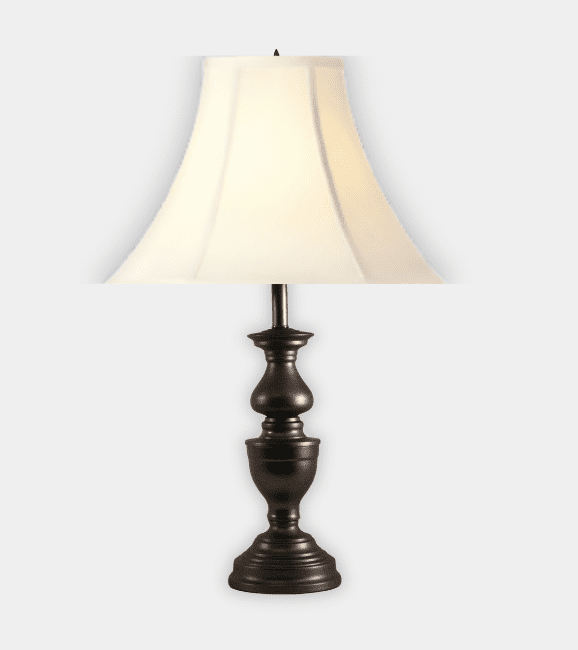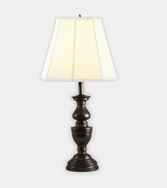 The Spun Metal Garrison in oil-rubbed bronze is available with your choice of linen empire shades in white or soft cream, or a bell or octagonal silk shade in soft white.