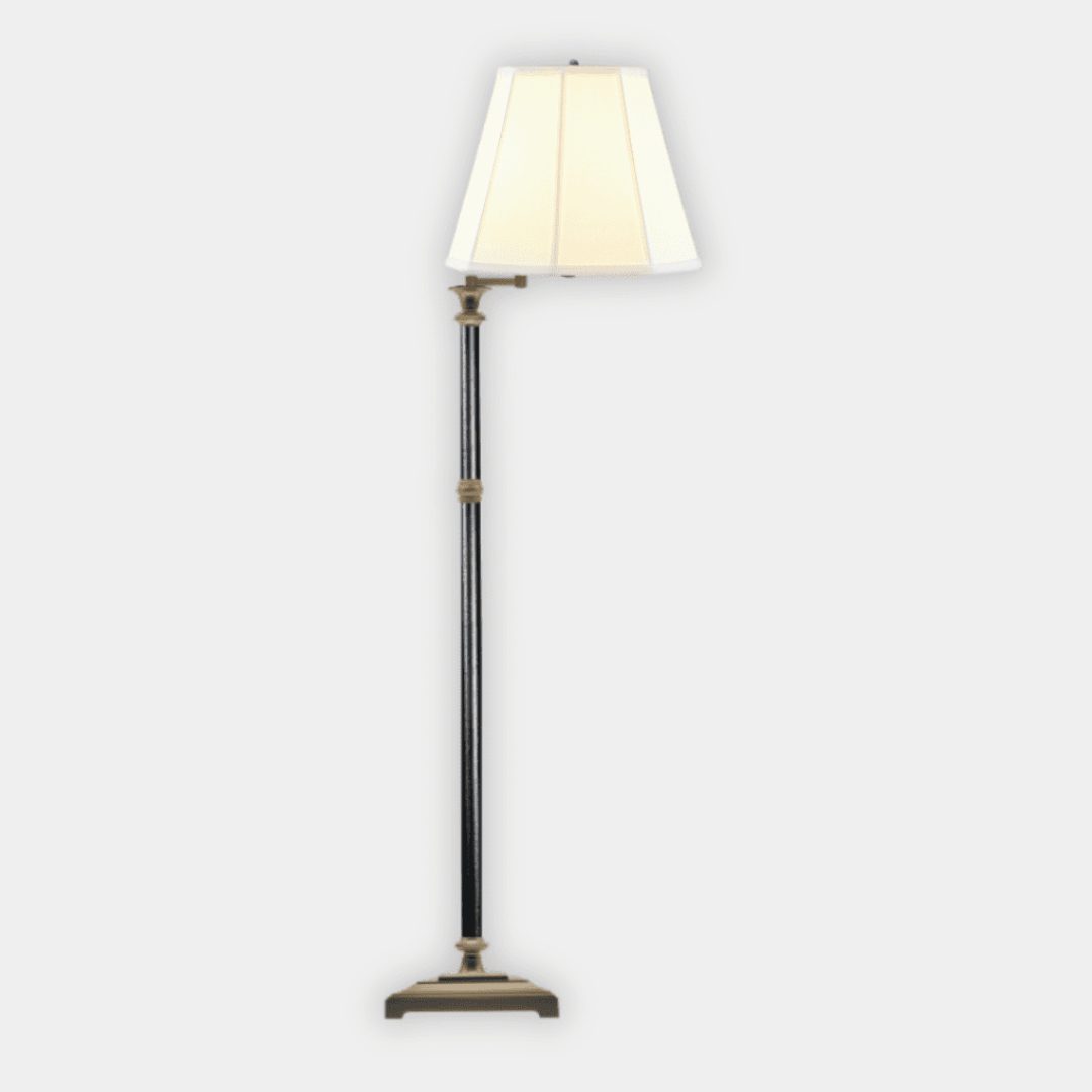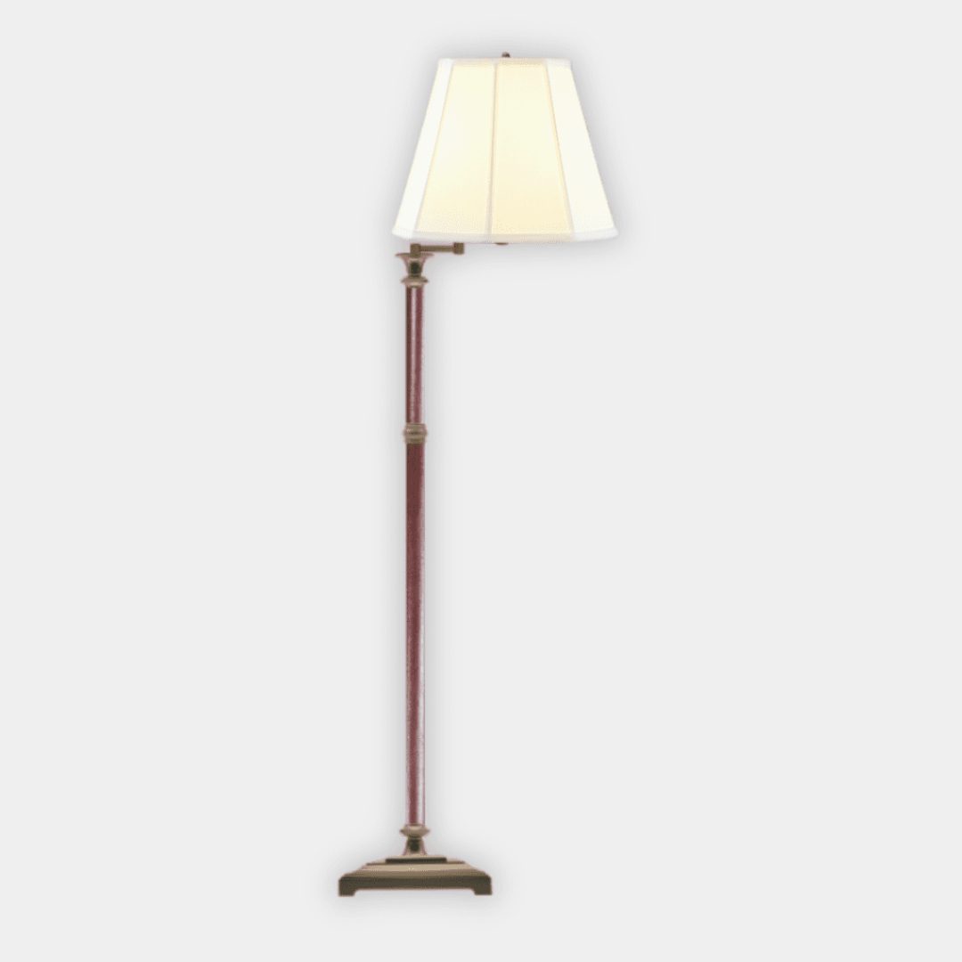 The Library of Congress swing arm floor lamp is available in your choice of three finishes: Aged Cherry, Chestnut Faux Leather, or Black Faux Leather.