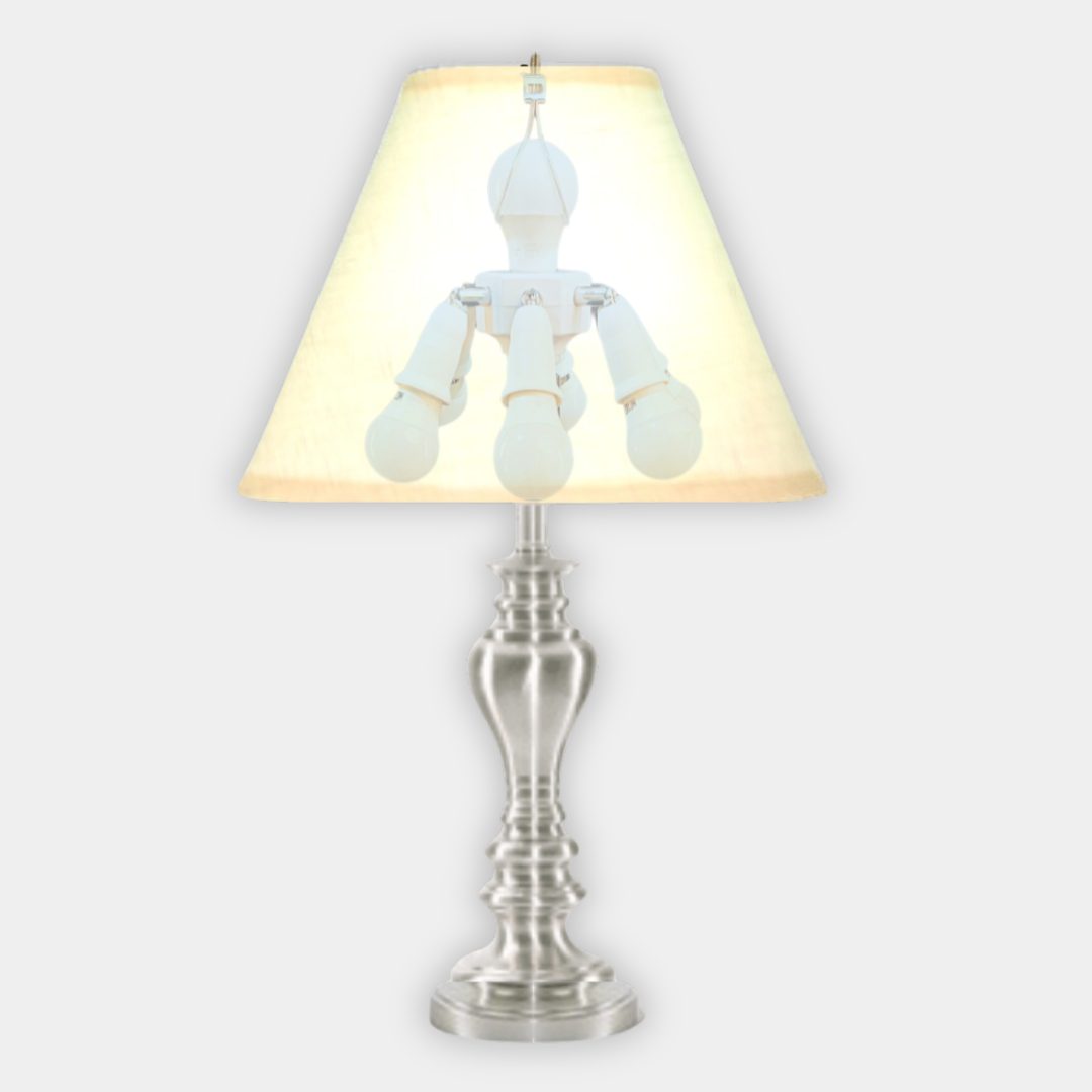 The MicrosunLȳte collection features all-LED lamps that emit over 5,000 lumens of bright, healthy 4000K light. Choose between frosted or filament bulbs with standard or premium light to customize your experience. Frosted bulbs diffuse the light while the clear Filament bulbs emit light unfiltered. The Premium bulb upgrade adds over 1000 Lumens to the total output of your MicrosunLyte. The fully dimmable MicrosunLȳte spun metal table lamp is topped with a linen shade in soft white.
